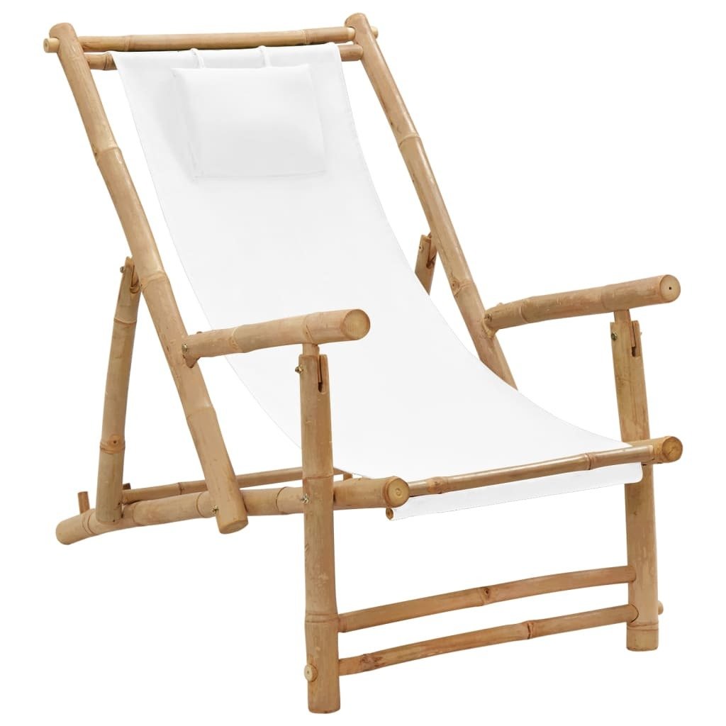 Home > Deck Chair Bamboo and Canvas Cream White